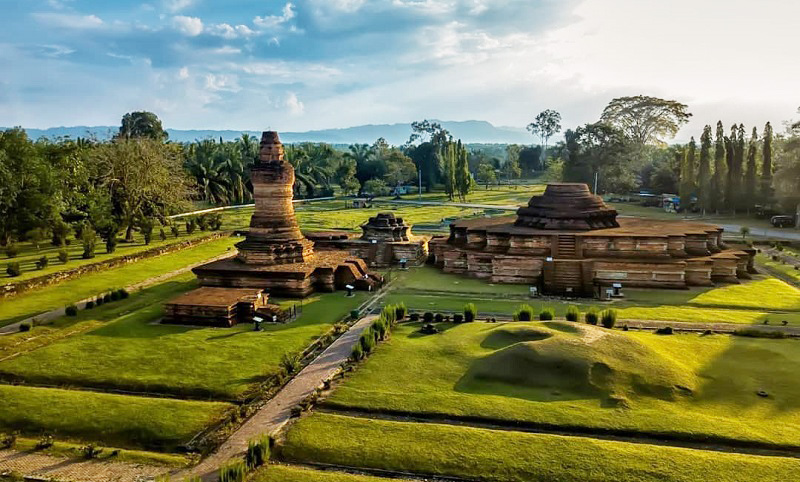 Stupa Mahligai, yang menjadi ikon kompleks ini, berdiri megah dengan bentuk silinder yang unik. Menurut sejarah, stupa ini dahulu digunakan sebagai tempat penyimpanan relik suci, sebuah tradisi yang sangat penting dalam kepercayaan Buddha. Melangkah di sekitar candi, pengunjung dapat merasakan aura sakral dan seolah terbawa ke masa lampau ketika peradaban besar pernah bersemi di tanah Sumatera.